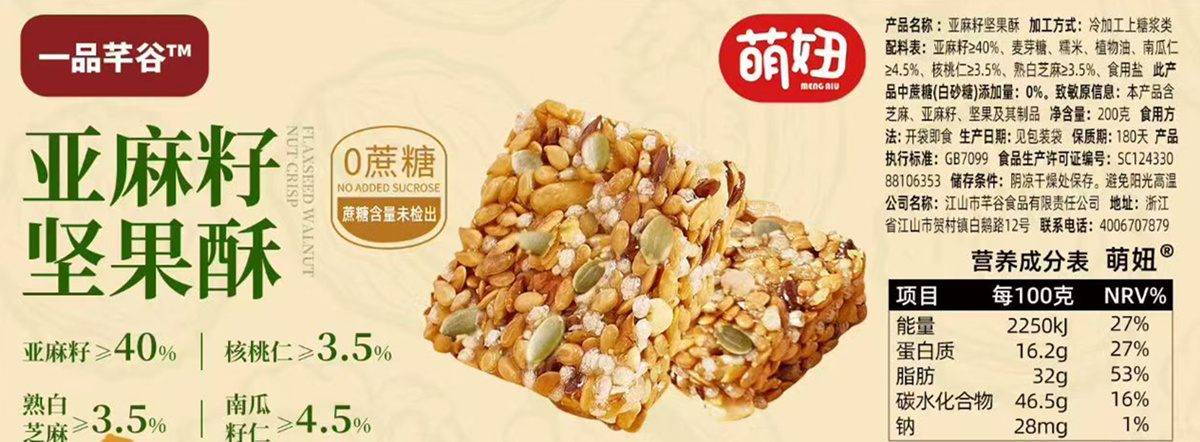 新品上市-亚麻籽坚果酥:0蔗糖,甄选亚麻籽、核桃仁、白芝麻、南瓜仁等,酥脆醇香,烘焙渠道专供!江山市芊谷食品有限责任公司 厂家直批、可代工!还有香米酥等产品。手机/微信:18357092081 潘先生。、 [